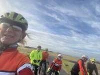The cross tail wind on the springline road required our full concentration. Fortunately, West Dragon Hill was sheltered and we enjoyed mince pies, mulled wine and renewed acquaintances with local cyclists in the White Horse car park.